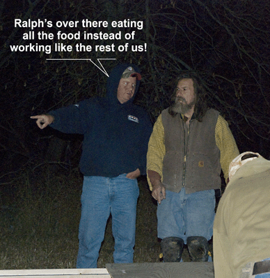 Okay let's get this November Expedition story started here. At 4:00am Thursday October 28th we headed out for North Dakota, 2 trucks 3 in each and a trailer loaded to the max once again on our truck. Tim Stiffler, Susie and myself (David Butler) in our truck and then in Scotty Pounds truck there was Vince Rhodes, Ralph Wakely and a hunting dog named Riggs (That's all I will say about this dog...and don't ask!) |
