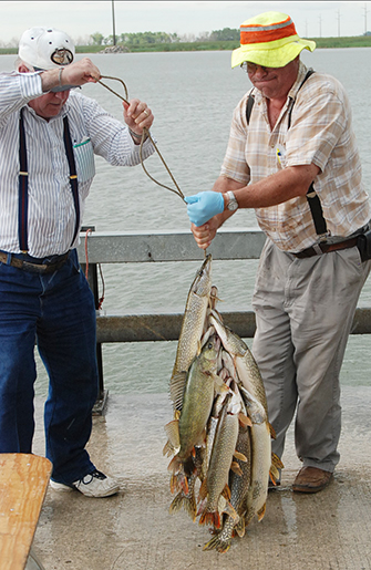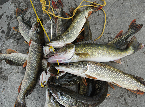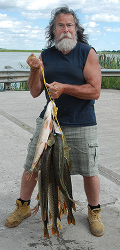 | Here's the catch...mostly Northerns and one walleye...it started raining just about the same time the table was set up for the cleaning but after a few minutes it stopped and the Fox boys were quick to make fillets out of the mess of fish above. | |||||||||||||||||||||||||||||||||||||||||||||||||