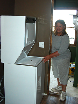 | Above you see Susie with her stackable washer and dryer...it was the wrong color when Gable Shrock gave it to her but we fixed it up with a fresh coat of white paint. | ||||||||||||||||||||||||||||||||||||||||||||||||||||||||||||||||||||||||||||||||||||||||||||||||