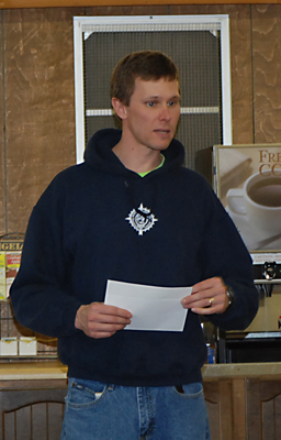 | Brandon Dennis: Quaker Haven Director had some opening remarks before we got started. Compliments to Brandon the chef and the rest of his staff for putting together a great meal at a great place (Quaker Hall) |