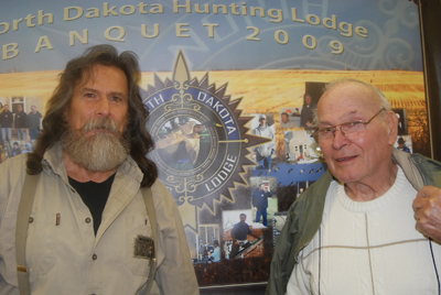 | Here's a picture of my dad (Doyle) and me in front of the 2009 banquet banner. |
