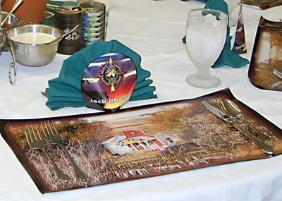 | The tables were set...place mats and name cards except Ralph Wakely...I know that I made him one however it never did materialize. We let him sit at a table just the same though |