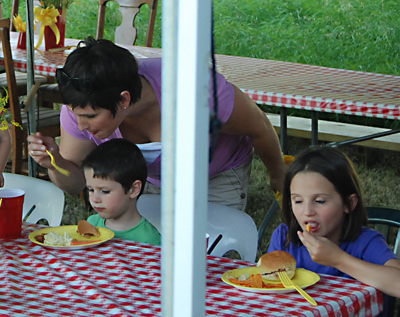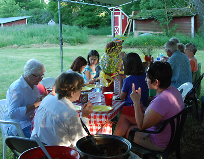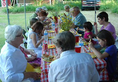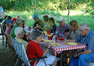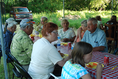 We had been wanting to do something like this for some time now and we were so glad that so many neighbors and friends took the time to come out and help us celebrate the moment together. Some brought some food even when they were told not to...that was fine of course. We brought up the tent awnings and some extra tables and found several old fold up chairs in the barn along with some tables and chairs that my sister and her husband LeRoy had brought out and left a couple of years ago. The morning started out with thunder storms but cleared off nicely before noon and many asked if we had sprayed or something because the bugs were not a bother at all. I think the last of our guests left about 9:30 pm and we were all done cleaning up by 10:30 or so. We had such a great time that we are already planning for the next time. |
