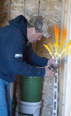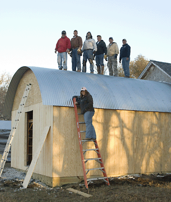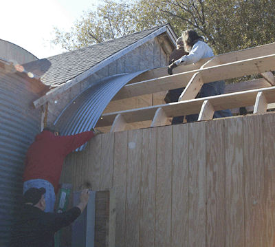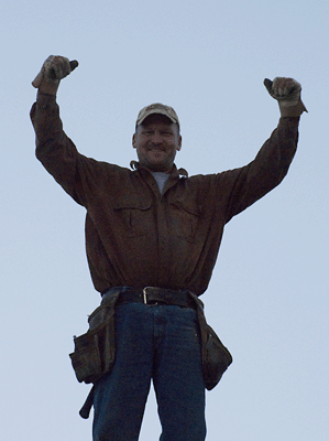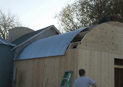 | Here we go ... It's Monday morning November 1st and the first piece of steel is going up...this will tell us just about what kind of problems we might face and it basically said "NO PROBLEM" and the rest of the sheets went up without a hitch. | |||||||||||||||||||||||||||||||||||||||||||