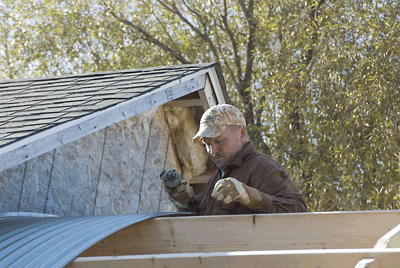 | Victory... mission accomplished and look...it's still plenty light out and the roof is on...not only is the roof on and the siding...let's look inside and see what Larry's been up to | |||||||||||||||||||||||||||||||||||||||||||