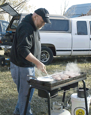 Tim Stiffler the camp cook busy with the grill here and the results there to the right! |