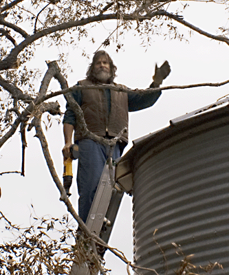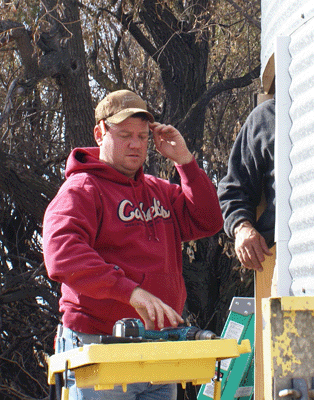 Oh yeah...this is from the first day also...had to do some tree trimming before we installed the chimney for the wood stove... |