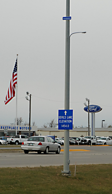 | Her's a sign in Devils Lake the little blue sign up high is the lake level of Devils Lake right now...so if the dike breaks people there will want to have boats in their drive ways for sure! | |||||||||||||||||||||||||||||||||||||||||||||||||||||||||||