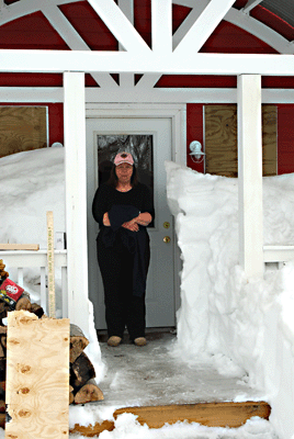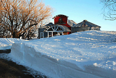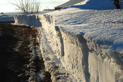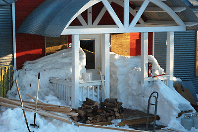 I just rode my snowmobile up and looked at the Lodge. You would not believe the snow up there. The drift starts a little past the barn, and runs all the way to the Lodge. It is probably 6 foot deep the whole way. There is a drift across the porch that goes nearly to the top of the front door. It is so deep and hard, I am not sure a snow blower could even touch it. The road is also blocked, but I can get the county to open that up if I know you are coming for sure. I guess if at all possible, I would come in a month, hopefully it will be gone by then. Later Kelly |