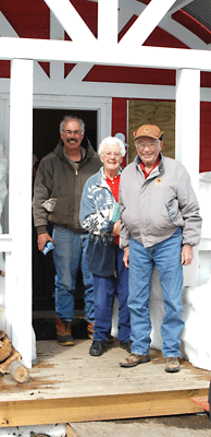 | The temperatures were quite mild...high 20's at night and 40's and better during the day. The yard became pretty muddy for the trek out to the privy so some stairs were carved into the bank just West out the front door and we were able to climb up to the top of the snow drifts and walk over without getting mud all over our boots...they lasted for the endurance of our stay. . we put a new stove in and was really pleased with it's performance for sure. Fixed the oven so Susie could showcase some of her best recipes for brownies and apple pie...everyone got a kick out them both for sure. | |||||||||||||||||||||||||||||||||||||||